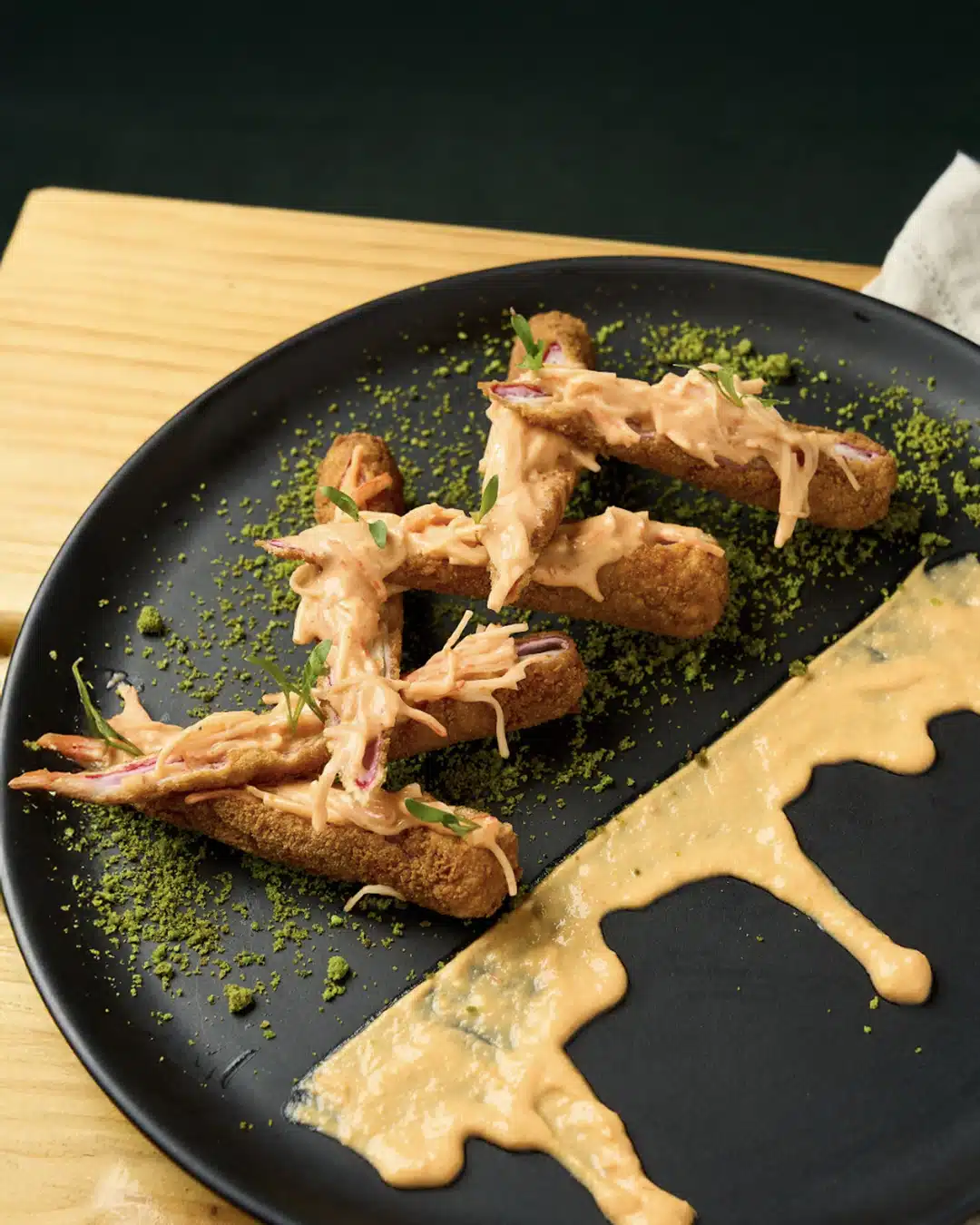 Crispy hearts of palm filled with dynamite sauce, served with our house-made “melcocha” sweet sauce.